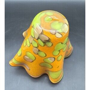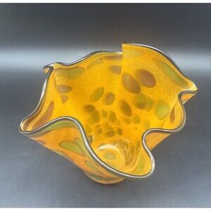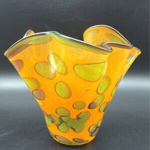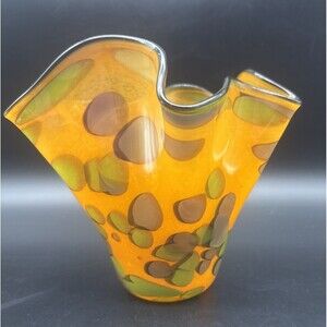 Jariufatoy Glass By Youghiogheny Art Glass ORANGE GREEN GRAY Handkerchief Vase