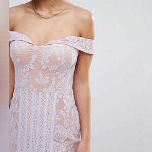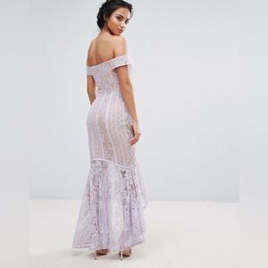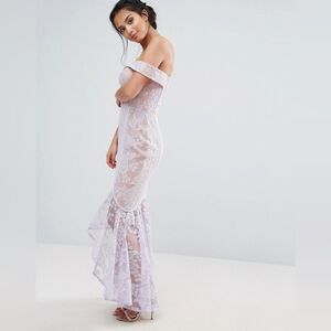 Jarlo All Over Lace Off Shoulder Fishtail Dress Lavender