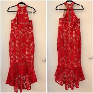 Jarlo London Red Lace Halter Neck Mermaid Flare Long Maxi Dress; excellent condition