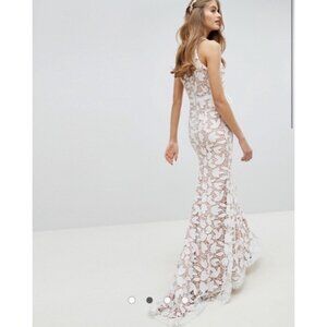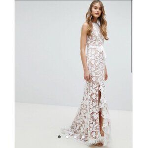 Jarlo White Petal All Over Cutwork Lace Maxi Dress With Bow Detail Waist