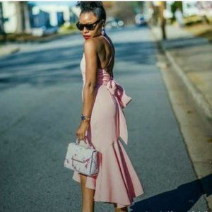 Jarlo Ruffle Hem, Open Back, Midi Dress in Pink - NEW with tags!