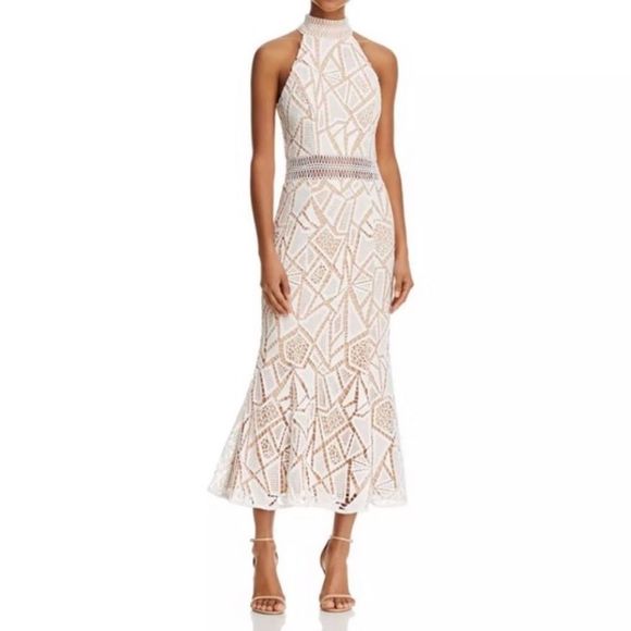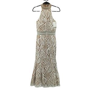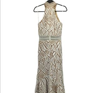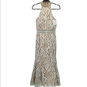 Jarlo Spring Ivory Nude Lace Illusion Flounce Halter Long Dress New With Tag 6