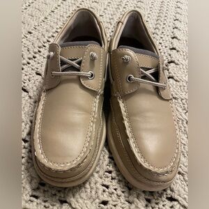 Tan khaki men’s boat shoes, loafers great preowned condition