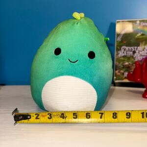 Authentic Squishmallows Jarrell the Dinosaur plush by Kellytoy. Features a soft ombre blue to green body with light green back spikes and classic embroidered Squishmallow face. Approx 8–9 inches tall (see measurements). Excellent used condition with no stains, holes, or odors. Butt tags intact, no hang tag. Produced in 2022. Perfect for Squishmallow collectors, dinosaur lovers, or cozy decor.