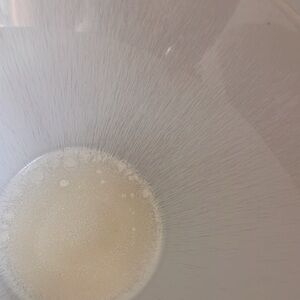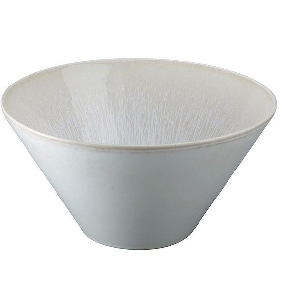 From website "classic and refined range with timeless elegance. Pure and contemporary lines revealed by two coats of glazes for an organic render. Serving bowl with perle glaze, bright white with cream generous drips. Hand sprayed."