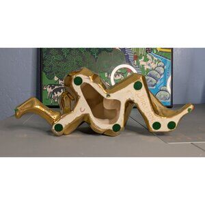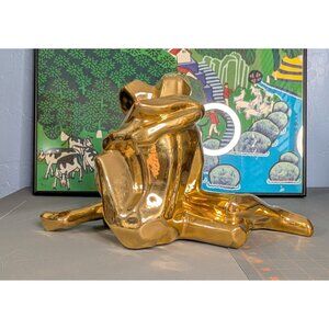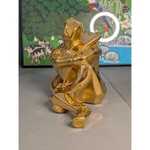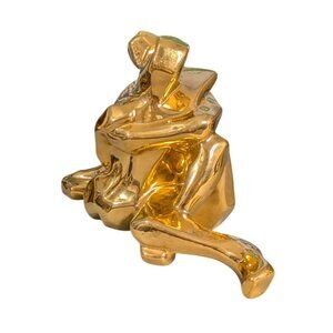 This Jaru sculpture captures an eternal moment of love, with two figures intertwined like they're auditioning for a romantic yoga class. Crafted in 1976, its golden ceramic finish adds a touch of nostalgia, making it a conversation starter or a quirky addition to any space.