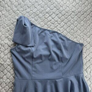 Jasambac One-Shoulder Cocktail Dress Blue Size XL Knee length Bow