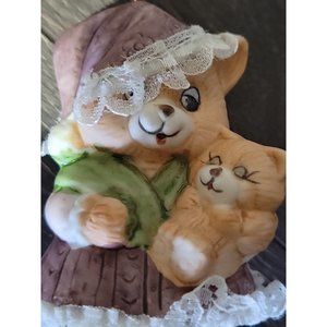 Jasco Caring Critters Chimer Ornament Bisque Porcelain Cat Mom Kitten Taiwan Vtg