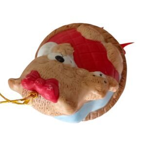 Jasco Sleeping Bear Bell Ornament Vtg Porcelain Merri Bells Miniature Christmas.