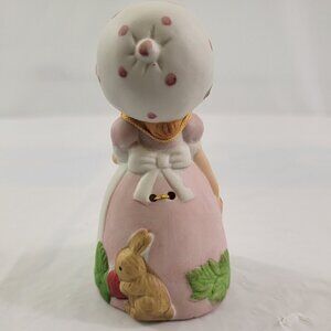 Style Tags: Jasco, Figurine, Strawberry Patches, Fine Bisque, Porcelain, Collectible, Bell, Girl Bell, Bird, Rabbit, Bell Figure