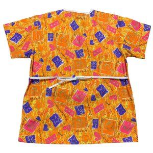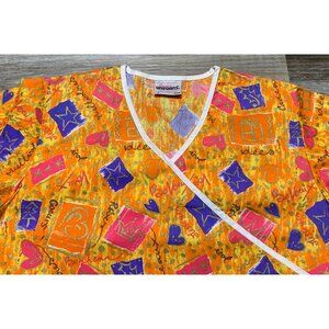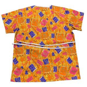 Jasco Uniform Womens Size M V-Neck Scrub Top Vibrant Holiday Geometric French