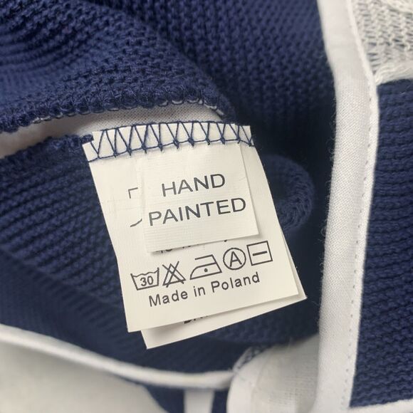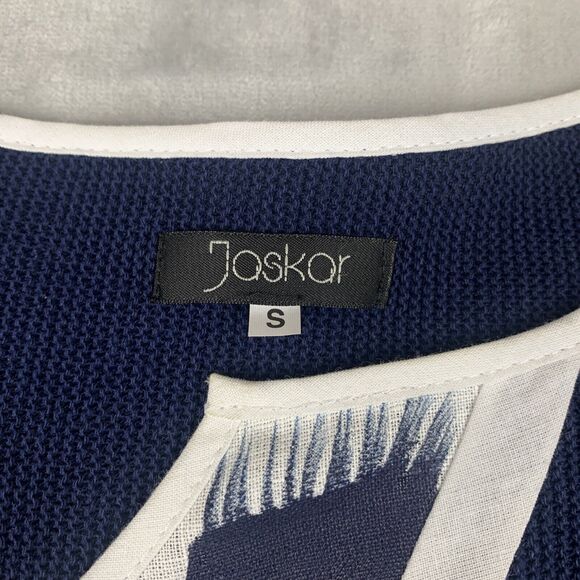 Jaskar Abstract Print Knit Jacket Women's Small Navy White Hand Painted (0441)