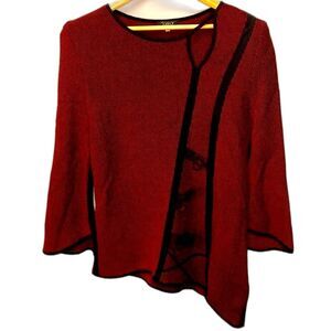 Jaskar Art To Wear Unique Red Black Cotton Blend Asymmetrical Tunic Top Size M
