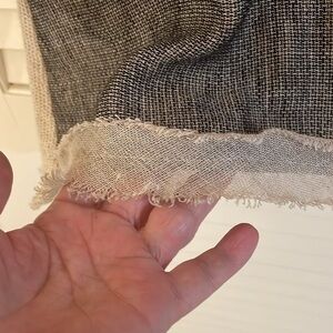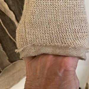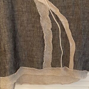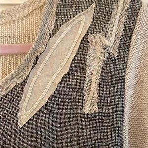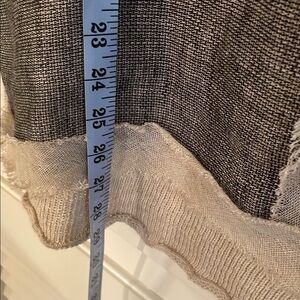 Varied measurements for length- see pictures This relaxed blouse features a striking asymmetrical design with a graphic pattern that adds a touch of artistic flair. The cream and black color combination enhances its visual appeal, making it a versatile choice for any casual occasion. Its comfortable fit ensures you stay stylish and at ease throughout the day.
