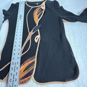 Jaskar Womens Black Knit Hand-Painted Cardigan Sweater Small Art to Wear Buttons
