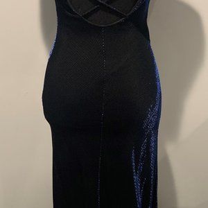 Jaslene ladies black & metallic blue spaghetti strap evening-gown