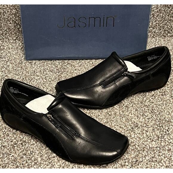 Jasmin Womens Alaina Slip On Loafers Shoes 8M Black Soft Suede Leather Comfort