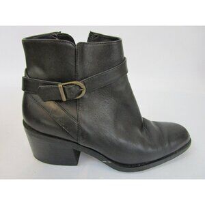 Jasmin Sport Black Leather Ankle Boots Womens Strapeze 8M Block Heel Zipper