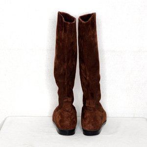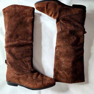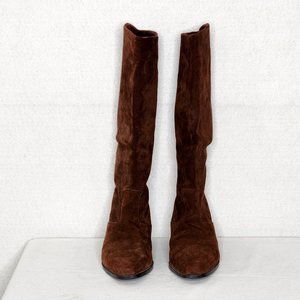 Jasmin Vintage Brown Suede Leather Boots 3/4" Heels Square Toe