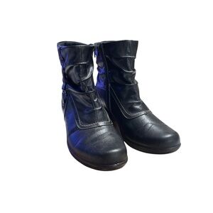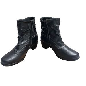 Jasmin women’s black low heeled ankle boots, Excellent used condition 1.75” heel Zipper closure Soft Insole Rounded toe. Size 10W