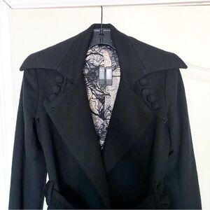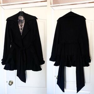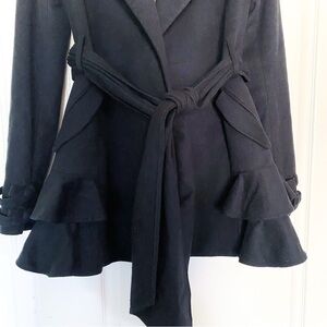 Jasmine Di Milo Coat Cashmere Signature Frill Wool Belted Short Black 6 GUC