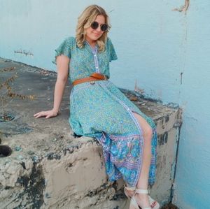 Jasmine Jade Flutter Sleeve Maxi Dress Gown in Jade colorway size extra extra small by spell and the gypsy collective. Spell exclusive! Brand new with tag! Can also be worn unbuttoned as a kimono or duster!