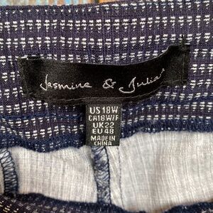 Here is a cute pair of Jasmine & Juliana Dark Blue Flat Front Stretch Capri Pants size 18W in good used condition.