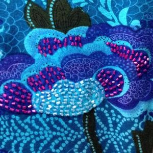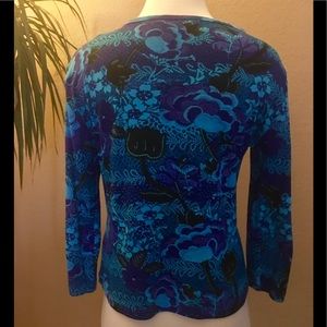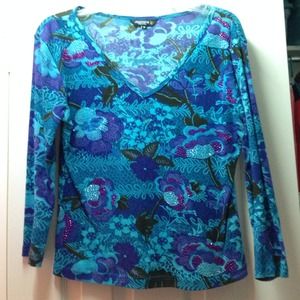 Gently used/in great shape, beaded embellished tee, Dark & light turquoise/purple/teal, hits at waist/hips. Smoke-free home. Bundle 2+ items and save!