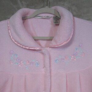 Jasmine Rose Size M Pink Plush Snap Bathrobe Fluffy Cozy Embroidered