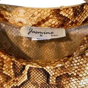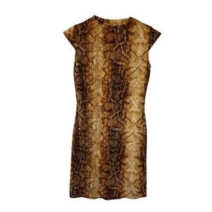 Jasmine Snakeskin Mini Dress Size Medium Stretch Knit Tan Brown Short Sleeves
