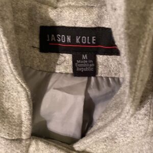 Though gently used, this Jason Kole Pea Coat is in excellent condition and has been well-maintained. Its neutral gray color allows for easy coordination with various outfits, making it a versatile choice for colder seasons.