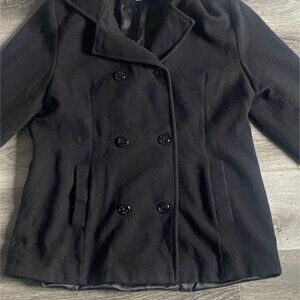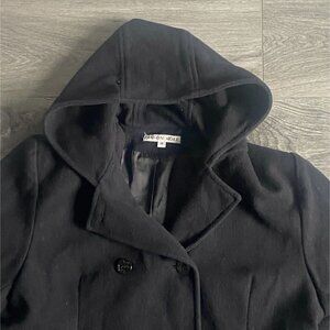 Jason Kole Womens Black, Hooded Peacoat-Mid-length-Black-Size M-GUC