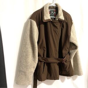 Jason Kole jacket/coat, ski patrol, size M, zips on left side, belted, 100% polyester shell and lining, pile sleeves. Measurements in pictures! In excellent preloved condition!