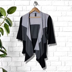 Jason Maxwell Colorblock 3/4 Sleeve Draping Cardigain;
