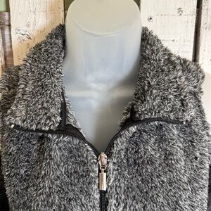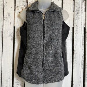 Jason Maxwell Full Zip Vest Pockets Cozy Fuzzy Fleece Black Gray Women Petite Small Warm outdoor camping hiking