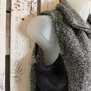 Jason Maxwell Full Zip Vest Pockets Cozy Fuzzy Fleece Black Gray Women P Small