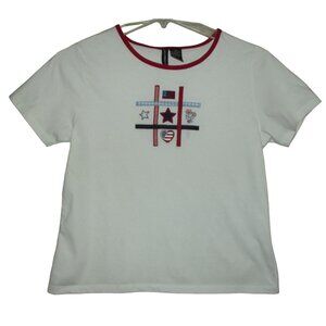 Jason Maxwell T-Shirt Women Medium White Red Blue Top patriotic embellished flag