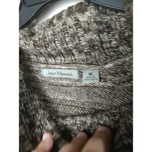 Jason Maxwell Woman M Sweater Brown White Heathered Cable Knit Long Sleeve Curve