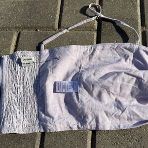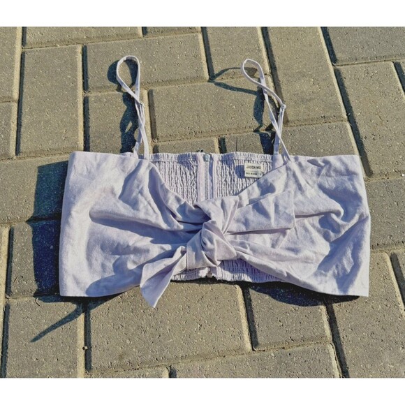 Jason WU crop Top Womens Lavender Purple Linen Tie Front Smocked Back NWOT LARGE