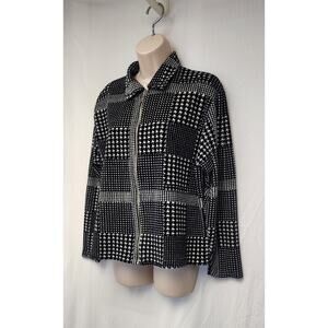 Jason Women’s Black SOFT Houndstooth Full Zip Long Sleeve Sweater Jacket Size M
