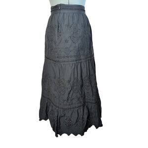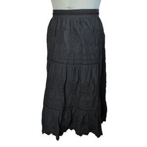 Jason Wu black cotton blend eyelet tiered lined midi skirt/peasant skirt, size large. Good used condition.