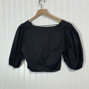 Jason Wu Black Puff Sleeve Twist Front Top Women’s M Square Neck Cropped Blouse
