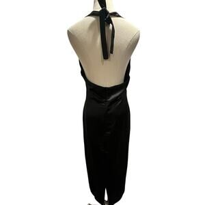 New with defect, Jason Wu Black Satin Plunging Deep U Neck Line Halter Midi Dress Sz Large