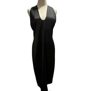 Jason Wu Black Satin Plunging Deep U Neckline Halter Midi Dress Sz Large