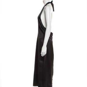 Jason Wu Black Satin Plunging Neckline Halter Midi Dress NWT