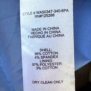 Material: Shell 96% Cotton, 4% Spandex | Lining 97% Polyester, 3% Cotton