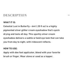 Enhance your look with Jason Wu's Celestial Lust 01 Butterfly cream shadow. This highly pigmented formula offers long-lasting wear and a bold, vibrant finish for any occasion.