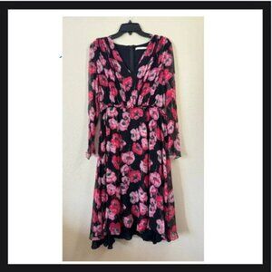 Delicate pleating at the bodice and a raw-edge ruffled empire waist lend a ladylike essence to this refined day dress. It is lined in silk to offer added coverage to a semi-sheer long-sleeve silhouette, and adorned with a lovely poppy print in a watercolor finish.