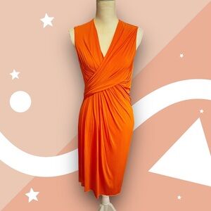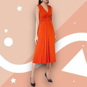 Orange v-neck midi dress from Jason Wu Collection featuring a sleeveless design, a fitted waist and a mid-length.