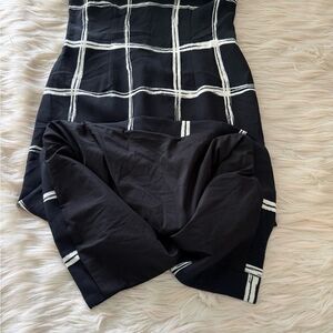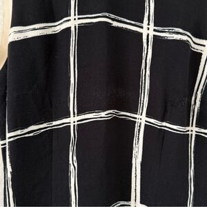 Windowpane Dress by Jason Wu Collection in Black and White with off white lace trim. A striking windowpane grid motif adorns this chic sheath, bringing a bold design to your workwear wardrobe. Its shoulders are accented with delicate raw-edge trim to add a subtle youthful, undone edge to this midi. Roundneck. Sleeveless. Concealed back zip. Raw-edge trim. Back vent. Viscose/wool/elastane with silk trim. Preowned with some light pilling across chest and at back shoulders as pictured. Size 6.